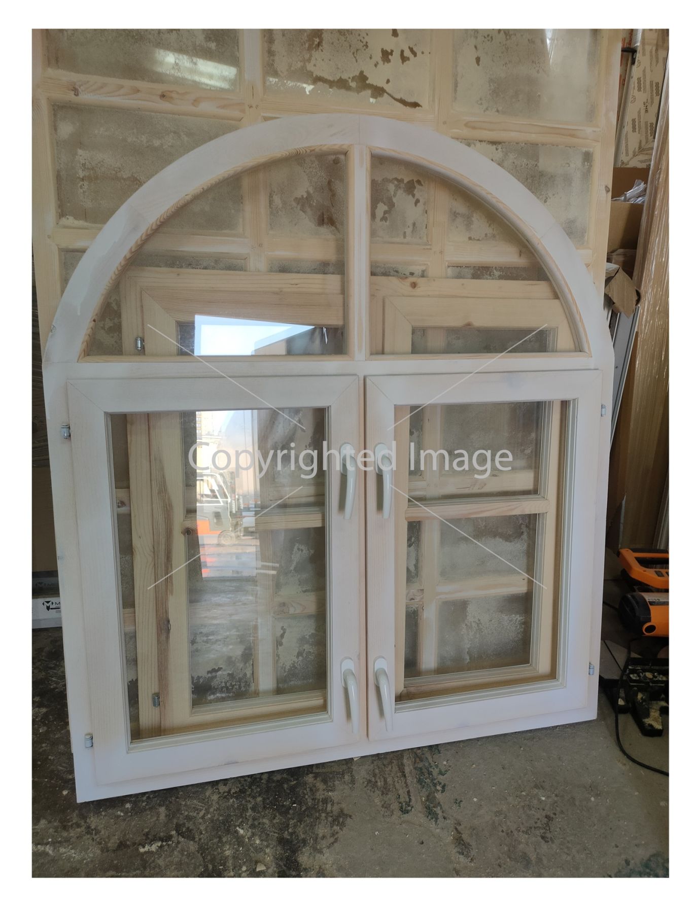 Арочное окно двухстворчатое 100х100, изготовлена из срощенного материала. Очень хорошо впишеться в террасу или веранду или в ваш дачный домик. При желании заказчика можно покрасить и остеклить арочную раму. Заказ на раму выполняеться в течении 3 недель! Все арочные рамы идут в комплекте со штапиком.